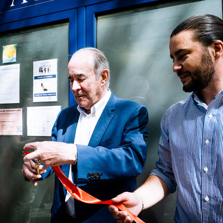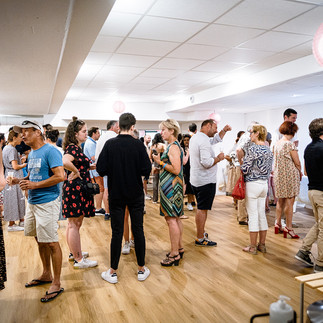 Après avoir coupé le ruban rouge, les participants sont descendus dans la salle cours collectifs pour un petit discours de Baptiste et un cocktail convivial!